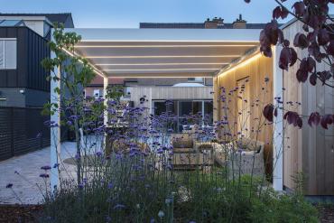 Der große Vorteil der Beleuchtung in Ihrer Terrassenüberdachung oder Ihrer Gelenkarmmarkise besteht darin, dass sie schön in die Struktur integriert ist. Das Ganze bleibt schön und dicht, ohne sichtbare Schrauben oder Verkabelung. Außerdem lässt sich die Beleuchtung zusammen mit der Markise oder dem Lamellendach einfach über die Fernbedienung, das Smartphone oder das Tablet bedienen.
